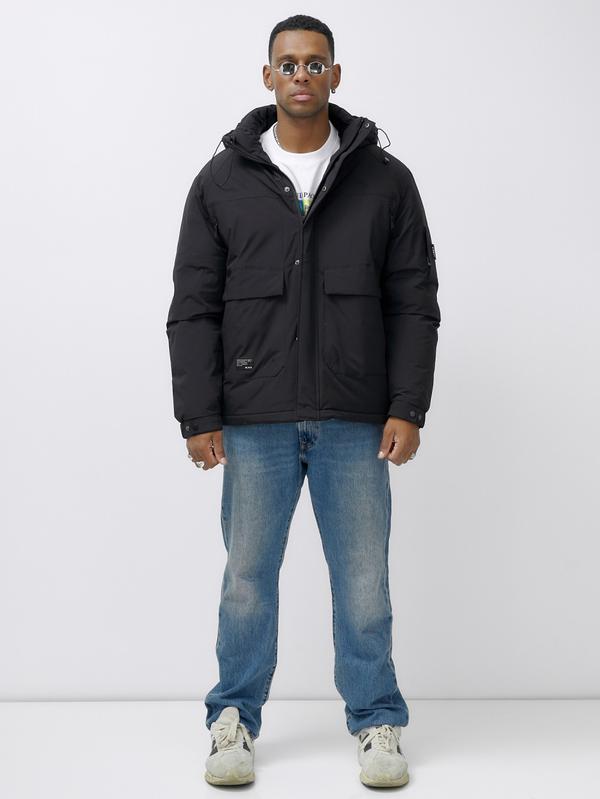 Куртка спортивная мужская зимняя большого размера черного цвета 632Ch