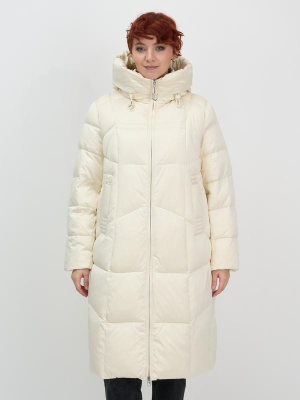 Пальто зимнее утепленное с капюшоном женское бежевого цвета 7702B