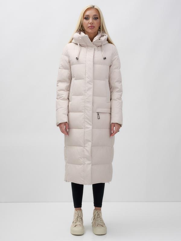 Пальто утепленное стеганное зимнее с капюшоном женское бежевого цвета 9626B
