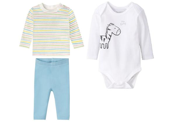 Комплект из трех предметов-боди (1шт) +леггинсы (1 шт)+лонгслив (1 шт). Милый комплект, состоящий из лонгслива и термолеггинсов. Леггинсы мягкие и теплые благодаря начесу внутри. Лонгслив с практичными кнопками на плечах для легкого надевания и снятия. Оптимальная посадка благодаря эластану LYCRA®. EcoPrint - 100% экологическая печать на текстиле. LIDL является партнером проекта «Cotton made in Africa», направленного на поддержку устойчивого производства социального и экологически чистого хлопка в Африке с самого начала цепочки поставок. Проект «Cotton made in Africa» вносит значительный вклад в защиту окружающей среды и искоренение бедности в Африке. Состав: лонгслив-100% хлопок, леггинсы- 95% хлопок, 5% эластан. Упаковка: складская.