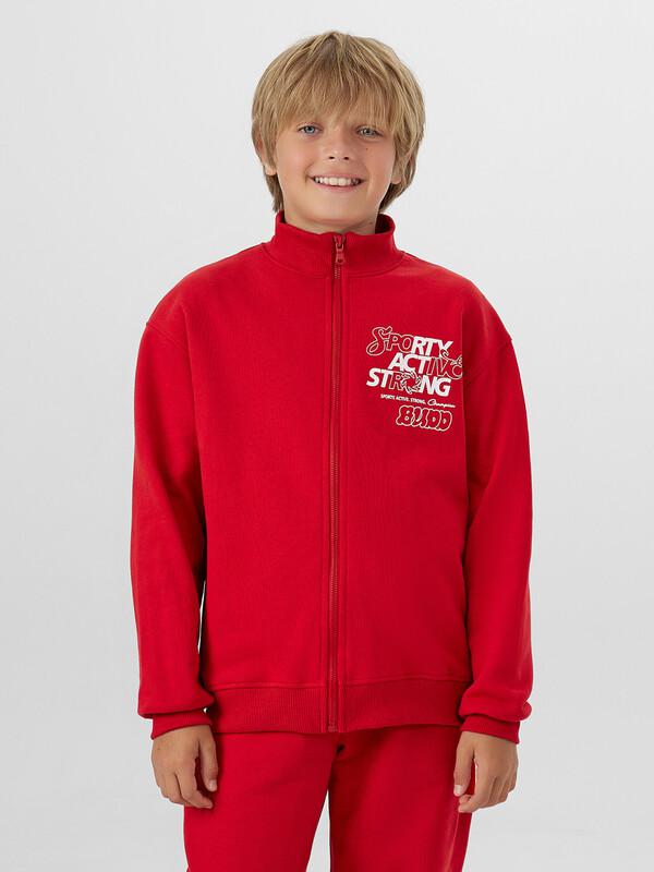 Представляем вашему вниманию стильную толстовку для мальчиков. Этот практичный и комфортный элемент гардероба станет незаменимым спутником в любое время года. Модель выполнена из футера без подчеса, со спущенным плечом. По низу рукавов - отрезные манжеты из рибаны. Отрезной пояс также выполнен из рибаны, что обеспечивает плотное и комфортное прилегание к фигуре. Застежка-молния позволяет легко надевать и снимать толстовку. В составе изделия - высококачественный хлопок. Универсальный дизайн позволяет сочетать ее с различными элементами гардероба, создавая стильные повседневные образы. Толстовка станет отличным вариантом как для занятий спортом, так и для прогулок с друзьями. Рекомендуем!