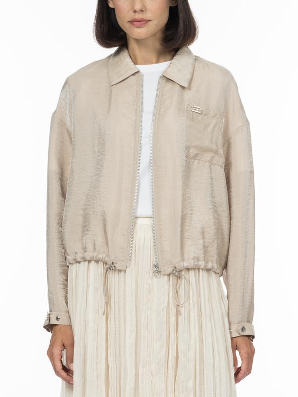 Легкий бомбер выполнен из ткани на основе бамбукового волокна, что делает её экологичным и комфортным. Бамбук — это возобновляемый ресурс, он быстро растет и не требует использования химикатов, что делает выбранное полотно экологически чистым. Бамбуковое волокно нежное и приятное на ощупь, подходит для людей с чувствительной кожей, так как не вызывает раздражения и аллергии. Кроме того, бамбук естественным образом препятствует размножению бактерий, что делает ткань гигиеничной. Ткань с содержанием бамбуковых волокон воздухопроницаема, обеспечивает комфорт в теплое время года. Бамбук эффективно впитывает влагу, сохраняя кожу сухой, полиамид придает нитям гладкость, а ткани - деликатный блеск, подчеркивая презентабельность куртки. Модель из премиальной ткани отличается минималистичным дизайном. Втачной рукав со спущенным плечом обеспечивает комфорт и свободу движений, кулиска по низу с фиксаторами позволяет регулировать посадку. Крой без подкладки упрощает конструкцию, делая куртку легкой и удобной в свободной посадке. Застежка на надежную молнию аккуратна и удобна при надевании, подчеркивает минималистичный дизайн. Манжеты на кнопках фиксируют рукава в нужном положении. Накладной карман с брендированной металлической нашивкой повышает функциональностью расширяет стилистические возможности модели. Наличие брендированных деталей - это признак высокого уровня изделия. Такие элементы подчеркивают статусность вещи и ее принадлежность к категории премиум. Несмотря на сдержанный характер, бежевый цвет куртки способен интересно обыграть как кэжуальный, так и романтический образы. Полотно с золотистыми бликами делает куртку стильным акцентом в любом образе.<br>