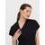 Черное платье выполнено из эластичного плотного джерси — материал мягко облегает фигуру, не сковывая движений. Прилегающий силуэт подчеркивает линии тела, сохраняя при этом комфорт. Ассиметричный вырез и диагональные складки добавляют динамики и визуального интереса. Короткие цельнокроеные рукава придают модели чистый, лаконичный вид. Длина миди и легкое расклешение юбки от бедра формируют женственный силуэт. Платье сочетает строгость и выразительность, подходит как для деловых, так и для вечерних образов.