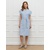 Лаконичное платье прямого силуэта, с цельнокроеными короткими рукавами и щелевидной горловиной, получилось легким благодаря тонкому материалу с размытым принтом. Длина до середины колена, спереди на левой стороне шлица, талия подчеркивается поясом-лентой.