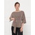 Элегантная блузка из тонкого эластичного трикотажа с деликатным золотым мерцанием мягко струится по фигуре. Цельнокроеные рукава 7/8 и лаконичная горловина подчеркивают изящество модели. Широкий пояс с декоративной пряжкой акцентирует талию и создает женственный силуэт.