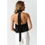 Топ с открытой спинкой из атласа. Модель полуприлегающего силуэта с открытыми плечами и качелькой на полочке, по горловине завязки и регулятор. На спинке узкая резинка по верху изделия.