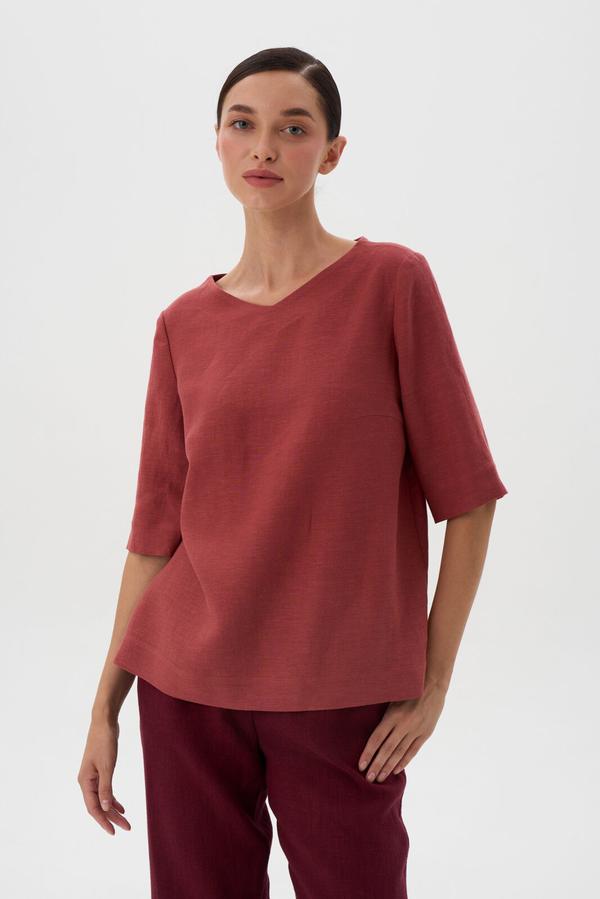 <p>Блузка прямого силуэта длиной до середины бедра. Вырез горловины V-образной формы Рукав втачной до локтя.</p>