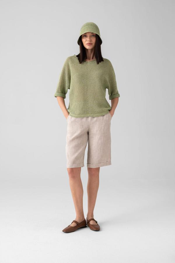 <p>Шорты женские прямые, до колена. Карманы в отрезном бочке. Пояс цельнокроеный на резинке. По низу цельнокроеные манжеты.</p>