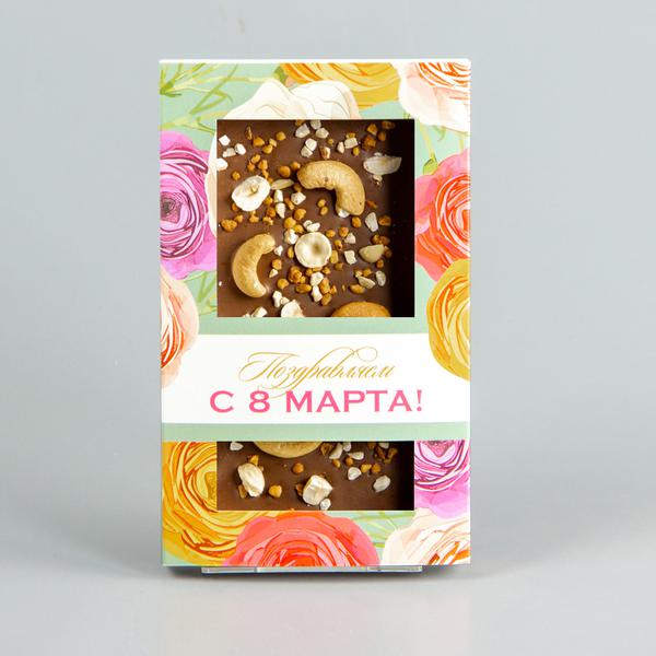 Молочный шоколад с кешью, фундуком и карамелизированным фундуком, коробочка с 8 марта #5