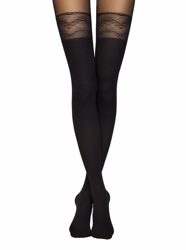 Производитель: CONTE ELEGANT Плотные фантазийные женские колготки с рисунком "имитация чулок c ажурными утягивающими трусиками", плоский шов, хлопковая ластовица. полиамид 90%, эластан 10%