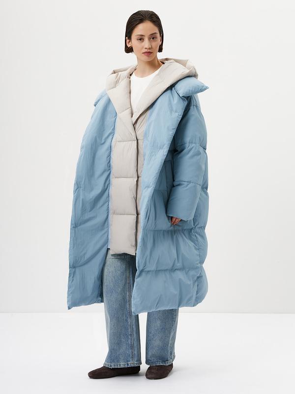 Пальто-пуховик с утеплителем Sorona– удлиненная модель свободного силуэта в голубом цвете с контрастным съемным капюшоном светло-серого оттенка. Водоотталкивающая и ветрозащитная ткань сочетается с инновационным наполнителем DuPont Sorona: биопух из переработанных материалов обладает превосходной теплоизоляцией, гипоаллергенен, сохраняет форму и не теряет свойств при сжатии. Практичные детали: застежка на магнитах, два боковых кармана, стильная имитация внутренней подкладки. Идеально для морозной погоды.