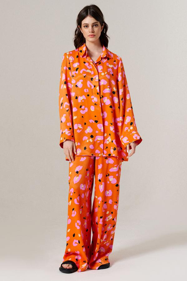 Костюм брючный в пижамном стиле из атласной вискозы.