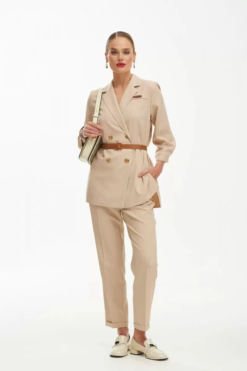 Костюм в полоску отличается своей универсальностью и способностью создавать эффектные образы. Одним из преимуществ такого костюма является его способность визуально вытягивать и стройнить силуэт. Вертикальные полосы создают эффект подтянутой фигуры, а также делают ее более изящной и привлекательной.