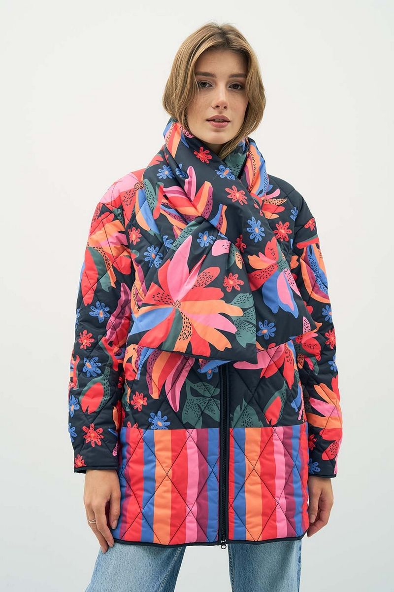 Куртка на демисезон из плащёвой ткани с текстилем Art Ribbon