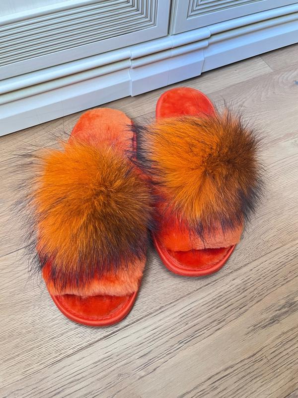 Тапочки из овчины с помпоном/открытые/оранжевый