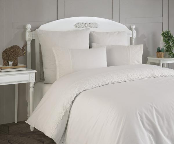 КПБ "KARTEKS" перкаль с гипюром, арт. LADIES PG-307 кремовый, р. евро: подод. 200х220см+гипюр-1шт., прост. 240х260см-1шт., нав. 50х70см+5см(гипюр)-2шт, 70х70см-2шт, состав 100% хлопок, плотность 125 гр.м2, упаковка-подарочная коробка