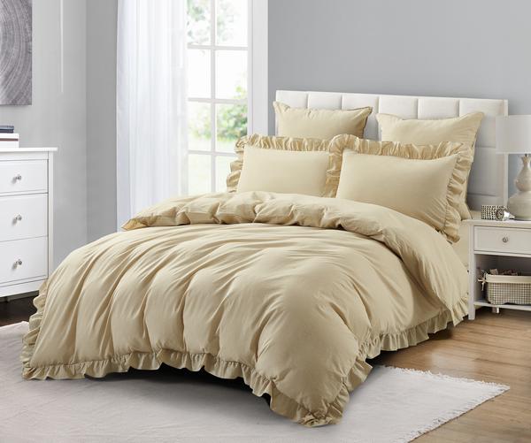 Комплект постельного белья "KARTEKS" вареный хлопок с рюшей. VJ 01 р. евро (подод. 200х220-1шт., прост. 230х250-1шт., нав. 50х70+5см-2шт, 70х70см-2шт) состав 100% хлопок , плотность 130 гр. м2, упаковка подарочная коробка.