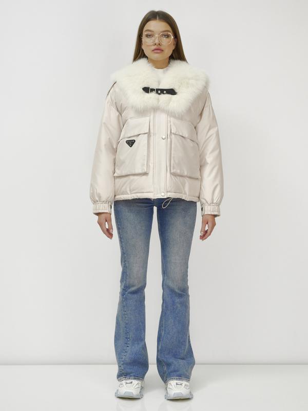 Куртка бомбер ангел с мехом песец премиум класса бежевого цвета 390_1B