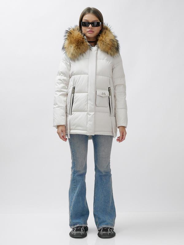 Куртка женская зимняя с мехом енот премиум класса светло-бежевого цвета 3215SB