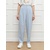 Голубые брюки силуэта каррот, с высокой посадкой, зауженным кроем и складками-защипами. Застежка - гульфик, боковые карманы, в поясе на спинке вставлена резинка. Модель выполнена из легкой костюмной ткани, которая хорошо пропускает воздух.