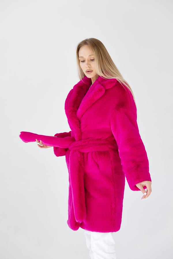 <ul><li>Модель: 25773</li> <li>Материал: эко-мех</li> <li>Цвет: фуксия</li> <li>Состав: 45% шерсть, 32% акрил, 23% полиэстер</li></ul><br/><br/><strong>Описание:</strong> Шубка утепленная <br> <br> Силует прямого силуэта, среднего объема.<br> Воротник отложной с лацканами.<br> Рукав 1-шовный со спущенным плечом.<br> Спинка - со средним швом. <br> <br> Длина по спинке - 95 см<br> Длина рукава - 72,5 см.
