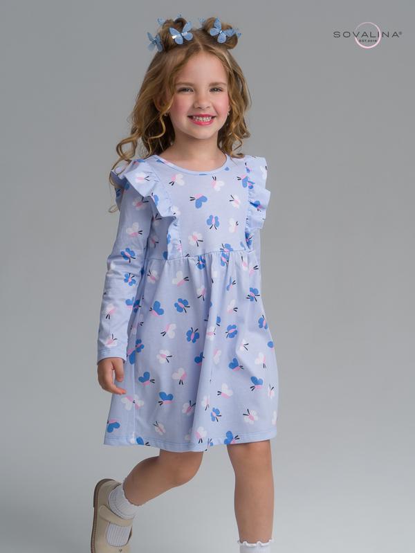 На плечах имеется легкое крылышко, которое добавляет платью оригинальности и дополняет образ маленькой модницы. Такой наряд подойдет как на праздник, так и на повседневную носку.