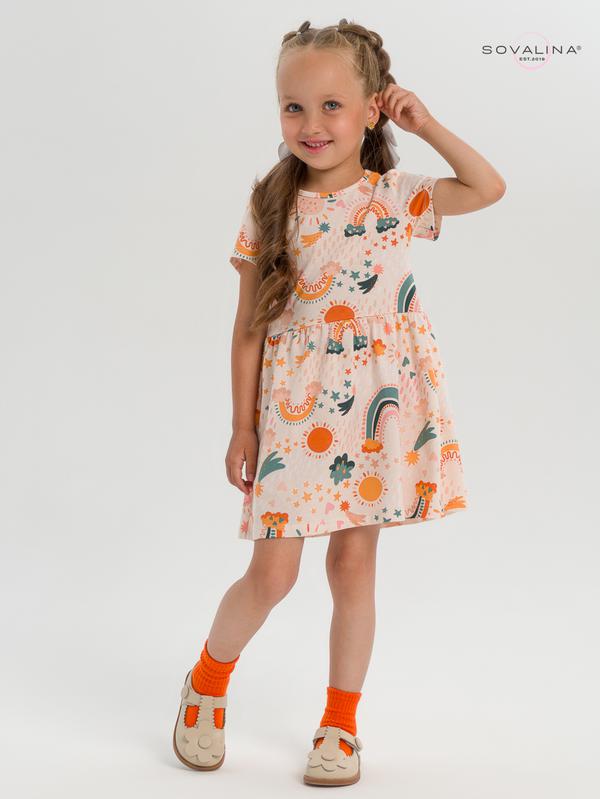 Трикотажное платье для девочки с коротким рукавом от бренда SOVAlina.