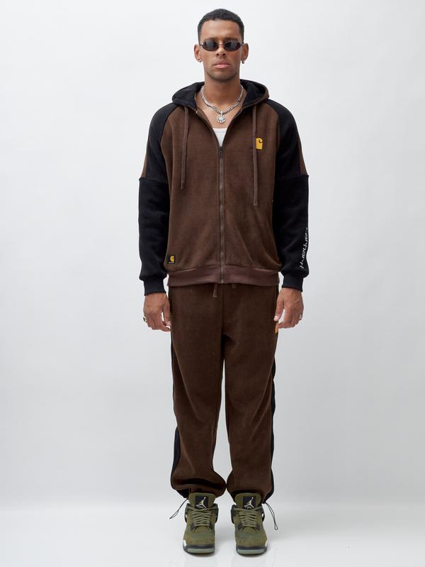 Спортивный костюм мужской демисезонный на флисе коричневого цвета 327K