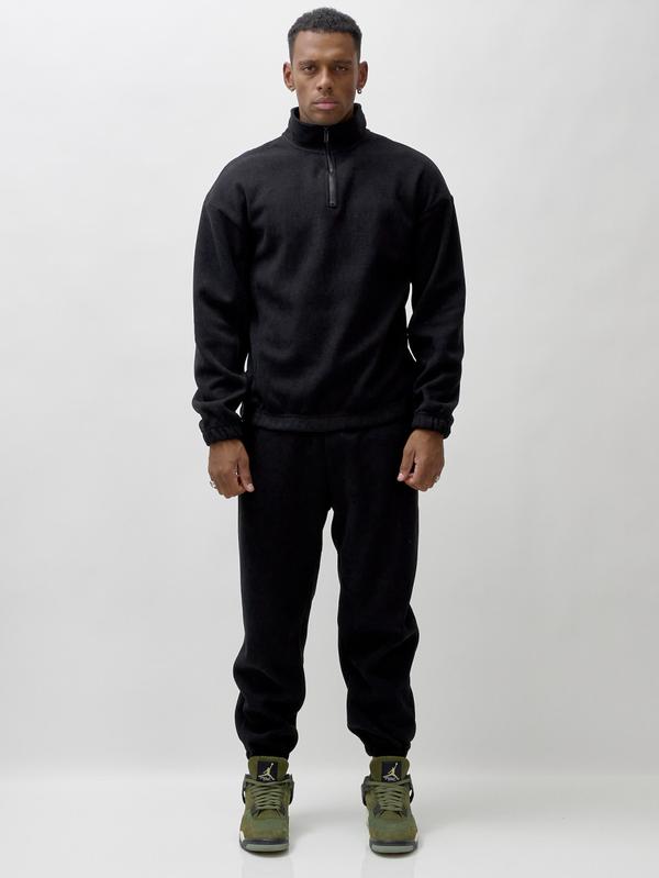 Спортивный костюм мужской демисезонный на флисе черного цвета 331Ch