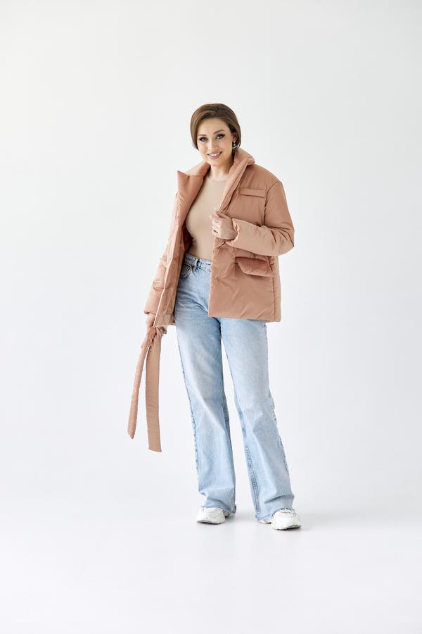 <ul><li>Модель: 23980</li> <li>Материал: Плащевая ткань</li> <li>Цвет: кэмел</li> <li>Состав: 100% полиэстер</li></ul><br/><br/><strong>Описание:</strong> Куртка женская демисезонная.<br> <br> Силуэт прямой.<br> Воротник английский.<br> Рукав 1-шовный, со спущенной линией плеча.<br> Застежка на 3 пробивные кнопки.<br> Карманы прорезные с листочкой и клапаном, накладные. Нагрудный карман с настрочной листочкой (обманка).<br> Есть пояс.<br> <br> Куртка на синтепоне плотностью 150 гр <br> <br> Длина изделия по спинке - 70 см<br> Длина рукава с плечом - 74 см