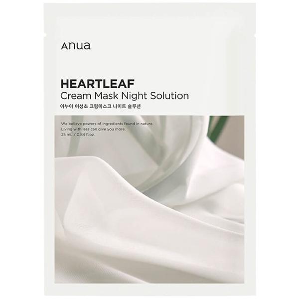 Барьерная тканевая крем-маска Anua Heartleaf Cream Mask Night Solution восстанавливает, смягчает и питает кожу, устраняя сухость и чувство стянутости.