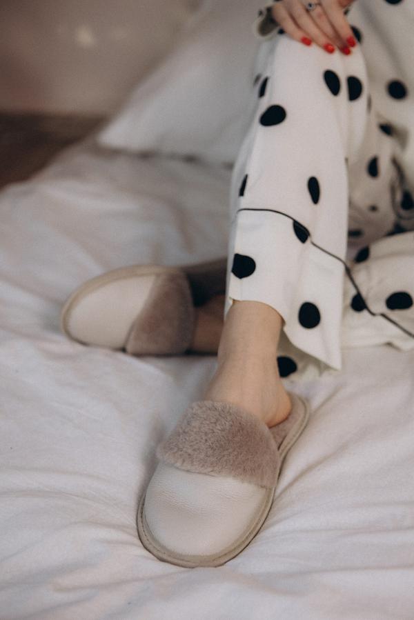 Тапочки из эко кожи с мехом/закрытые/молочный