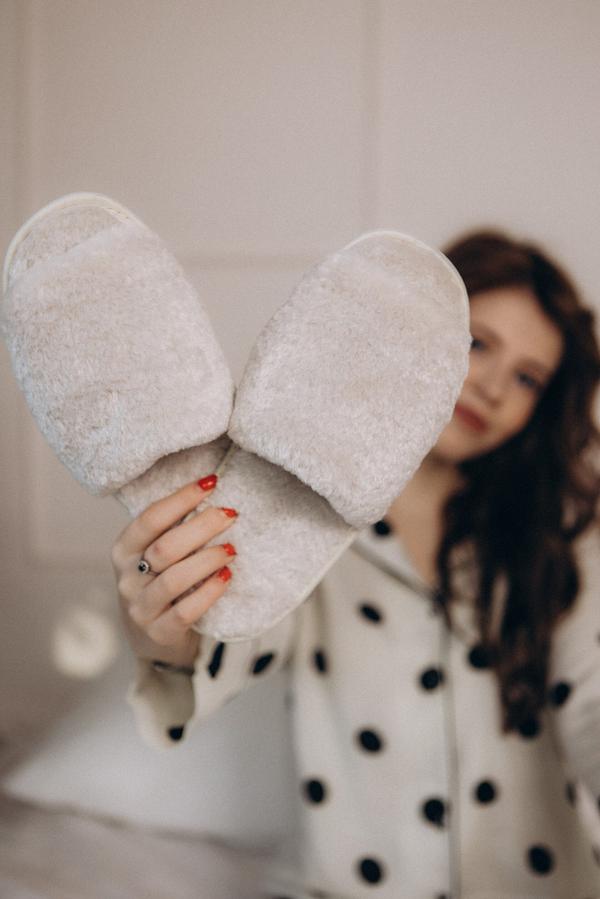 Тапочки из эко меха под керли. <br />Подошва - эва.