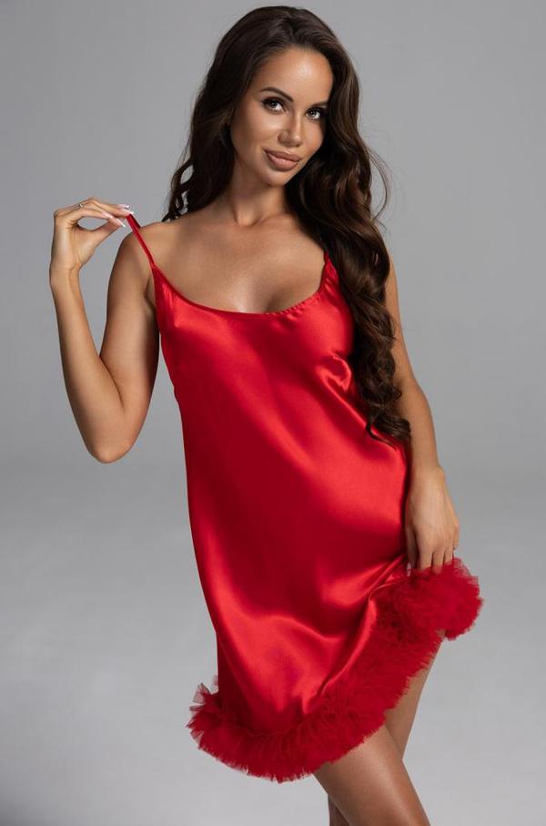 Короткая сорочка Mia-Amore без подреза на тонких регулируемых бретелях выполнена из мягкого искусственного шёлка. Низ сорочки украшен пышной многослойной сетчатой рюшей. Состав: 100% полиэстер