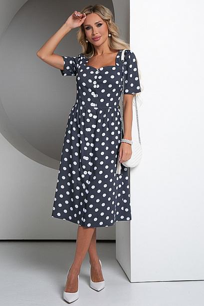 Платье из комфортной облегченной джинсы в горох.
