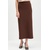 Юбка длины миди шоколадного оттенка. Модель прямого силуэта на притачном поясе. По спинке разрез, застежка на потайную молнию. Изделие на подкладке из поливискозы.