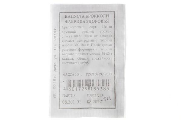 СЕМЕНА КАПУСТА БРОККОЛИ ФАБРИКА ЗДОРОВЬЯ Б/П 0,3Г 591876