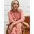 Свободная блузка с широкими рукавами реглан выполнена из невесомого вискозного материала персикового оттенка.