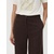 Брюки в шоколадном цвете, с высокой посадкой, выполнены из приятной на ощупь поливискозной ткани с плотным трикотажным переплетением. Расклешение от бедра формирует вытянутый, сбалансированный силуэт. Вытачки сзади обеспечивают точную посадку по фигуре. Застежка-гульфик и боковые карманы подчеркивают функциональность. В поясе по бокам вставлены резинки для удобства и комфорта в течение дня.