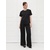 Элегантные брюки, выполненные из гладкого черного атласа, красиво струятся при движении, создавая эффектный силуэт. Прямой крой визуально вытягивает ноги, а широкий пояс с резинкой внутри обеспечивает комфортную посадку. Удобные боковые карманы добавляют практичности. Идеальный выбор для стильных вечерних образов.