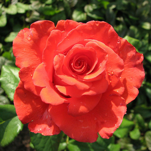 Чайно-гибридная. Сорт предназначен на срезку. Главной окраской цветка считается оранжево-красная, красная, а насыщенность – яркая. По форме бутона роза длинная и острая, по форме цветок классический, имеющий высокий центр. Размер крупный, в диаметре может достигать 12см. По количеству лепестков Корвет считается махровым сортом, всего их 25-30. Цветки располагаются одиночно. Аромат у розы приятный и слабый, то есть можно выращивать и дарить аллергикам. Куст вертикальный, имеет хорошее разветвление. Высота достигает 185см, ширина – до метра. У него сильная облиственность, темно-зеленые листочки, довольно крупные. Шипов на стебле мало. Цветение будет с начала лета и до заморозков, относится к повторноцветущим сортам с высокой морозостойкостью и средней устойчивостью к дождю.