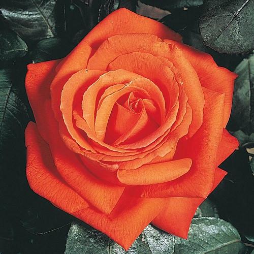 Чайно-гибридная. Цветки махровые, 10-12см, вначале бокаловидные, позднее раскрываются и становятся чашевидными. Одни считают цвет шокирующее неоновым оранжевым, другие описывают его как оранжевый с коралловым оттенком. Так же различаются и отзывы об аромате: большинство считают, что он фруктовый, но интенсивность варьирует от легкого до насыщенного. Цветки появляются по одному или в кистях. Листва ярко-зеленая, блестящая, побеги умеренно колючие. Куст высокий, прямостоячий, 120-160см высотой и 60-80см шириной.