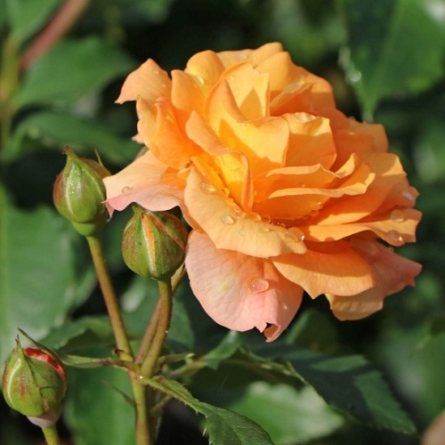 Флорибунда. Куст сорта густой, широкий, высота его 70, а ширина 60см. Листва растения глянцевая, выглядит здоровой. Цветки махровые, в диаметре они 8см, в одном цветке содержится 25-40 лепестков красивого абрикосово-оранжевого окраса. Форма роз чашевидная. Из преимуществ можно выделить, помимо красоты цветка, высокую устойчивость к чёрной пятнистости, к мучнистой росе. Цветок практически не болеет. Роза данной разновидности характеризуется обильным и повторным цветением, обеспечивая вашему саду привлекательный вид на протяжении всего сезона. Он станет прекрасным выбором для любой клумбы, бордюра или смешанной цветочной композиции.