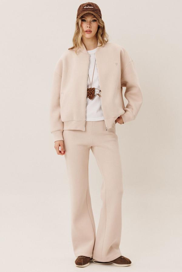Бомбер: стойка, манжеты и низ из ткани кашкорсе оверсайз облегание металлическая молния два прорезных кармана на переде вышивка-логотип в цвет ткани