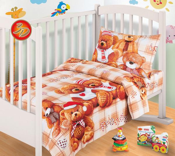 Бязь 125 гр. 100% х/б. Пододеяльник:   110х145 - 1 шт. Простыня:           110х150 - 1 шт. Простыня на резинке: 60х120х15 - высота Наволочки:         40*60 - 1 шт.