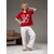 Пижама из интерлока красного цвета для девочки свободного силуэта . Состоит из футболки и брюк . Футболка с расширенной линией плеча, округлой горловиной и длинными рукавами. Прямые брюки с цельнокроенным поясом на резинке без бокового шва.