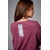 Свитшот из мягкой и пластичной экозамши, свободного силуэта, с длинным рукавом и круглой горловиной. По низу рукавов и изделия притачные манжеты. На переде декоративная планка, имитирующая застежку на пуговицы. Свитшот декорирован принтованными авторскими нашивками из джинса с необработанными срезами.
