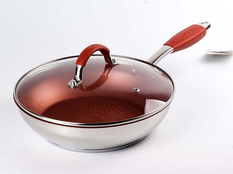 Нержавеющая сталь; 28х6.5см, керамическое покрытие , капсульное дно, индукция, цвет ручки: зеленый, красный, оранжевый, белый