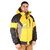 Куртка с антискользящей снегозащитной юбкой, ветрозащитной планкой на липучках и съемным регулирующимся капюшоном, рукава с эластичными вставками и фиксирующими липучками.