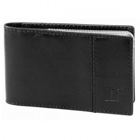 Горизонтальная визитница не имеет застежки. Внутри кожаные поля с вертикальными кармашками, блок из шестнадцати страниц с карманов для карт с окошечками для пальцев.